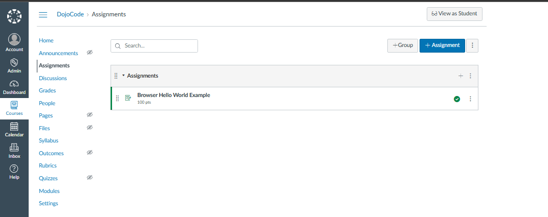 After registering your LTI tool with Canvas, you can create DojoCode assignments in your courses. This guide will walk you through the process of creating assignments that integrate with DojoCode tools.
