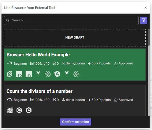 - A modal will open where you need to select the desired challenge: