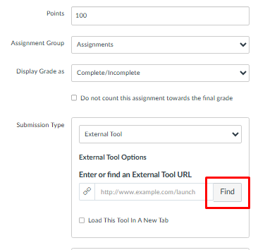 - In the Submission Type section, select External Tool.
