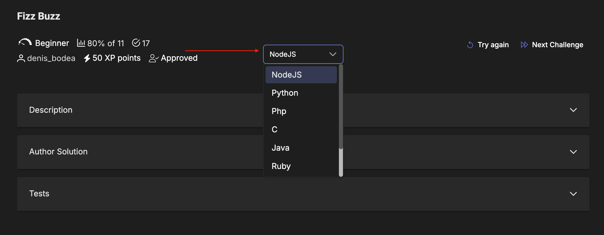 With this option, you can focus only on the submissions written in the template you prefer using your preferred programming language, or explore how other users approached the same challenge in different templates.